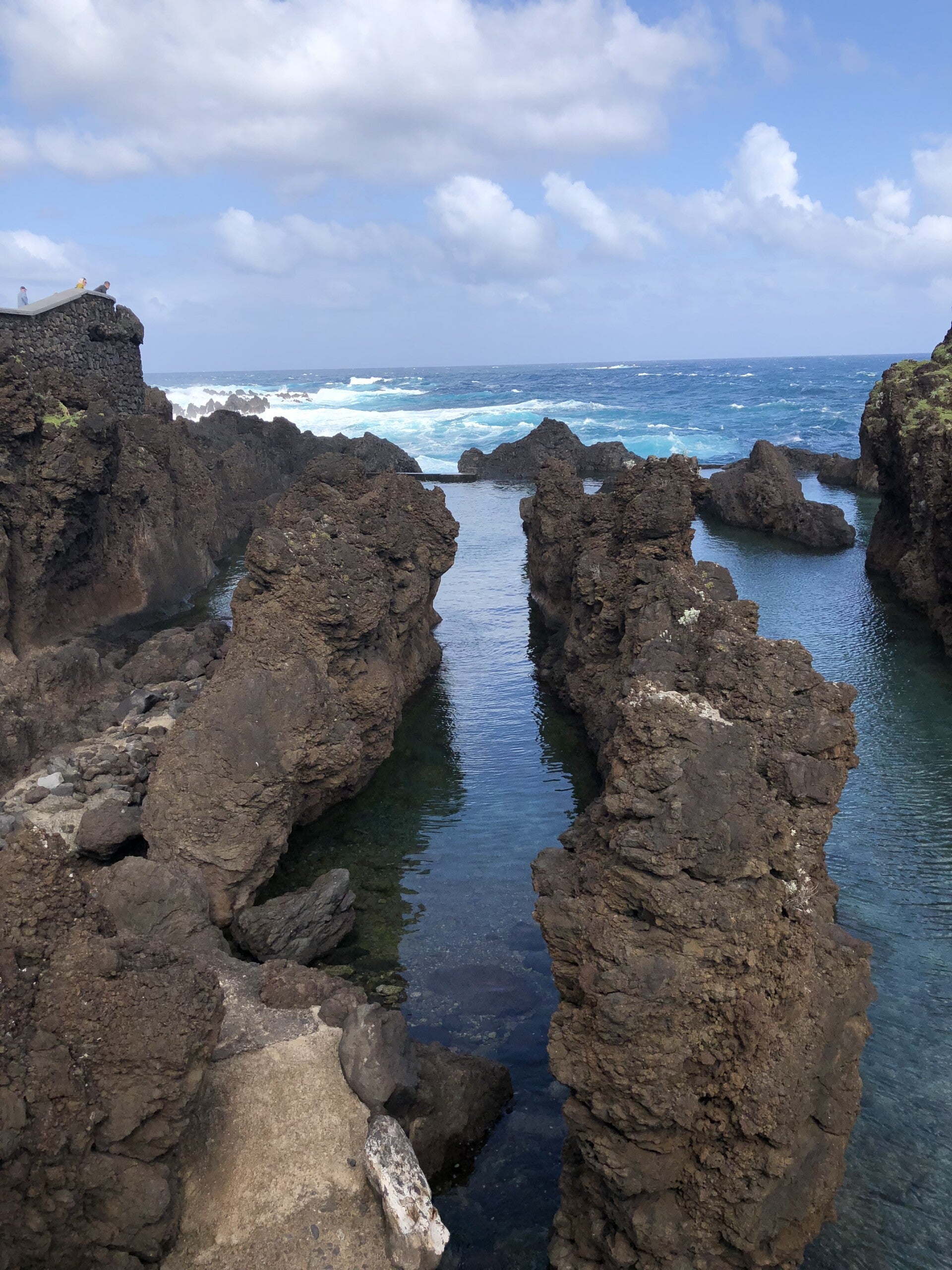 We zijn naar het Noorden gereden via mooie bergpassen, omringd door alleen maar groene hoge bergen, onze eerste stop is Sao Vicente een sfeervol plaatsje, we volgen de grillige en onstuimige maar mooie kustroute naar Seixal en vervolgens naar Porte Moniz. Daar zijn de natuurlijke zwembaden. Erg mooi!